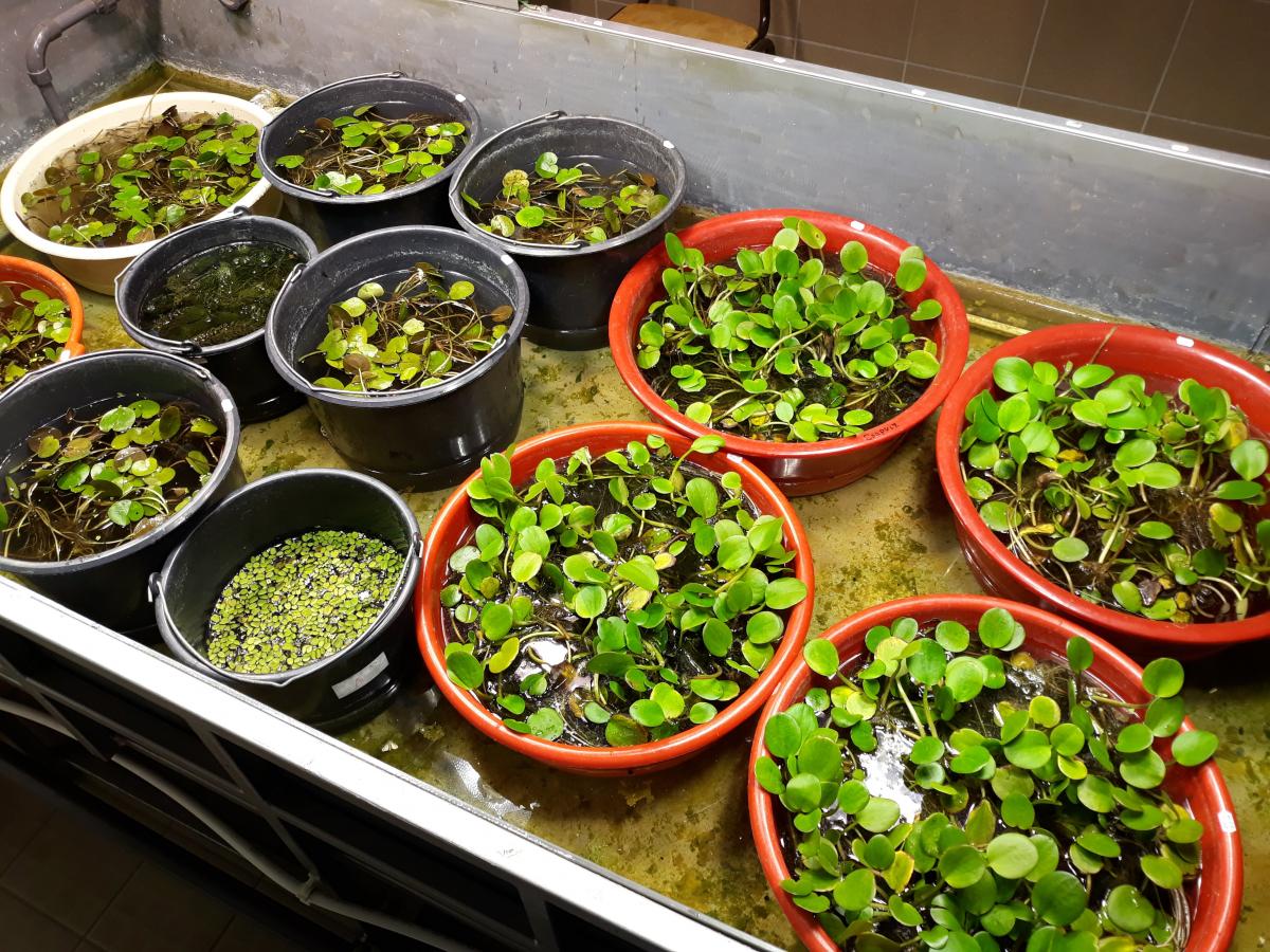 Olyan ökológiai kölcsönhatásokat vizsgálunk a vízinövények és algák között, melyek döntő szerepet játszanak a vizes élőhelyek vízminőségének javulásában. Tanulmányozzuk, hogy eutrofizáció hatására milyen változások következnek be egy vizes rendszer életében. Kutatásainkat az Környezettudományi Intézet klímaszobájában végezzük el, ahol kontrolált fény- és hőmérséklet viszonyok alatt, nagy ismétlésszámban kivitelezhetők akváriumi kísérletek. Laboratóriumi eredményeinket terepen végzett vízkémiai analízissel is kiegészítjük a régió vizes élőhelyein.